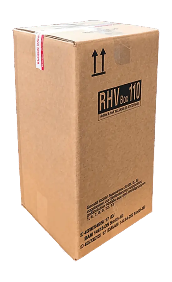 Beschreibung: Leerkarton zur Filterentsorgung, Sicherheitskarton mit Aufsaugvlies, und festem Kunststoffinnenbeutel