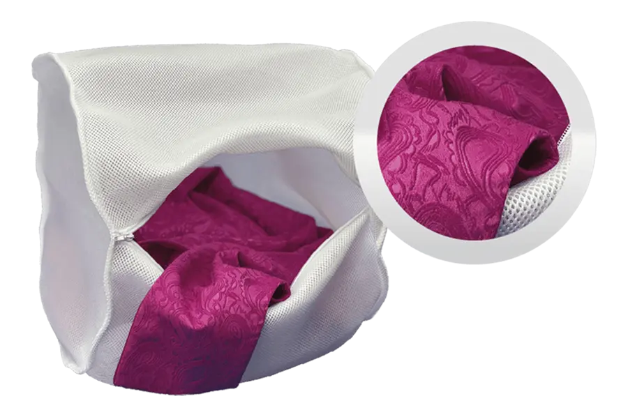 • Kleidung kann nicht mehr in eine Ecke des Netzes rutschen, dadurch gleichmäßigeres Waschen und Trocknen möglich