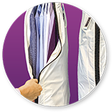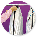 • Die Kleidung kann dabei direkt eingepackt werden, ohne den Bügel von der Stange zu nehmen.