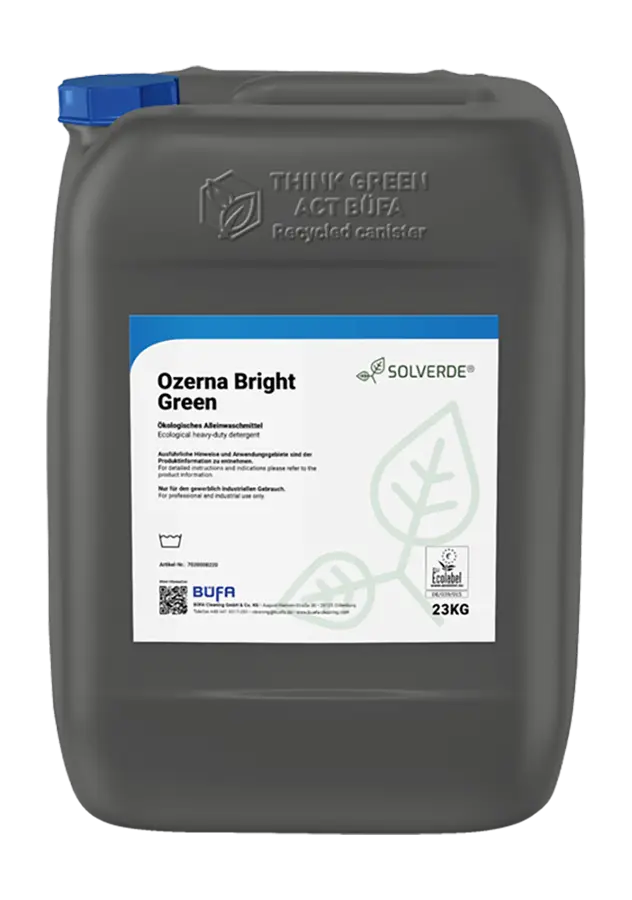 Mit dem Ozerna ECO Waschsystem bieten wir ein ökologisches Waschsystem nach dem Baukastenprinzip an. Es setzt sich aus einem alkalischen Alleinwaschmittel, einer flüssigen Sauerstoffbleiche, einem Neutralisationsmittel sowie einem Fettlöser zusammen. Die Fett und Eiweißlösekraft sind besonders stark ausgeprägt, ihre hohe Effektivität erreicht es bereits ab einer Temperatur von 40 °C.